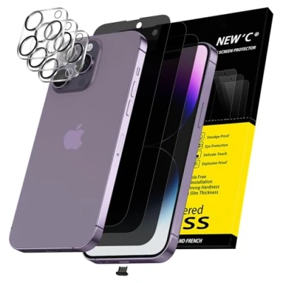 NEW'C 3x Privacy for iPhone 14 Pro Screen Protector (6.1 inches)+ Camera Lens Protector, Sensor Protection,Case Friendly Tempered Glass Film + Dust Plug Enhanced Angle of 28 Degrees
