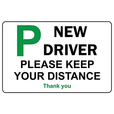 New driver please keep your distance thank you car Learner sign Self adhesive sticker Digitally printed and laminated for extra durability 10mm Radius rounded corners, no sharp edges