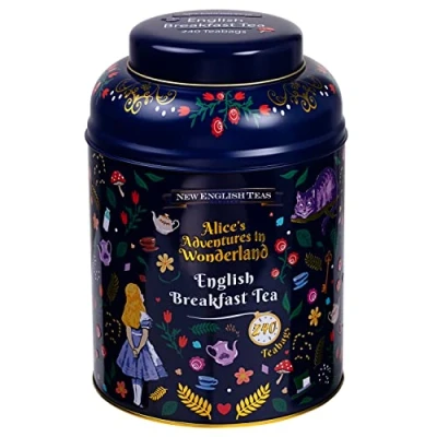 New English Teas Midnight Alice in Wonderland Tea Caddy with 240 Breakfast Teabags, Blue