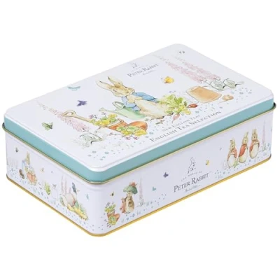 Decorative tea tin featuring Peter Rabbit among radishes flower pots and butterflies inspired by Beatrix Potter’s iconic garden scenes Includes 72 teabags in three blends English Breakfast Earl Grey and English Afternoon offering variety for every mood and time of day A charming gift for Beatrix Potter fans tea lovers and collectors perfect for birthdays Mother’s Day or literary-themed gifting Decorative tin featuring classic Beatrix Potter artwork makes a charming display piece that adds character to any kitchen shelf or tea collection Combines traditional British tea culture with classic illustration making it a unique addition to kitchen shelves or collector displays