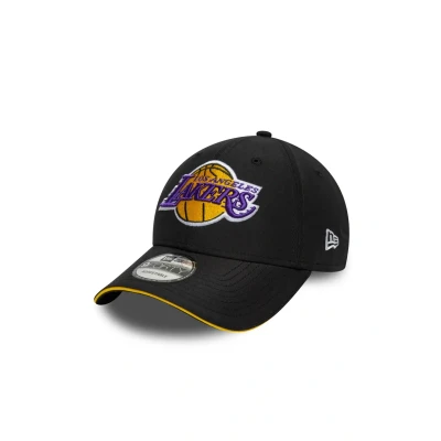 LA Lakers logo on front New Era Flag embroidered on left Structured crown Strapback Curved black sandwich visor with yellow inner Black undervisor Made with microfibre fabric 100% POLYESTER Product ID: 60771855