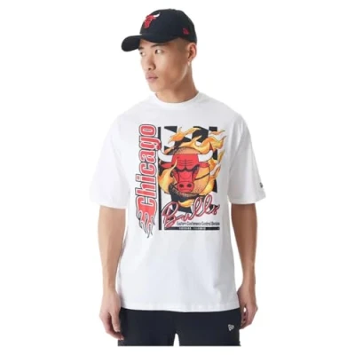 New Era NBA Flame Print Oversized T Shirt Chicago Bulls Whitete Red