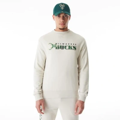 New Era Unisex Milwaukee Bucks Crew Neck Sweatshirt Light Beige