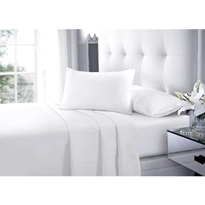 New Flat Sheets Easy Care Soft Cotton Rich Wrinkle Shrinkage and Fade Resistant Fabric Polycotton Bed (White, Super King)