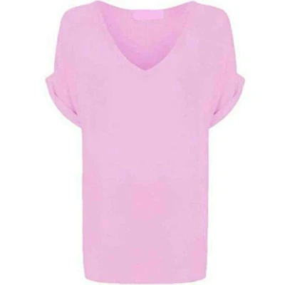 New Ladies Women's Plain V Neck Turn Up Short Sleeve Baggy T Shirt Plus Size. UK 8 26