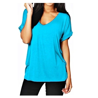 New Ladies Women's Plain V Neck Turn Up Short Sleeve Baggy T Shirt Plus Size. UK 8 26