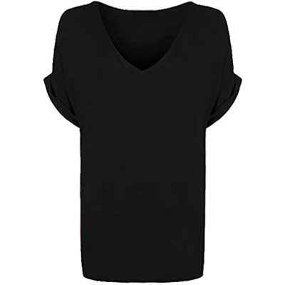 New Ladies Women's Plain V Neck Turn Up Short Sleeve Baggy T Shirt Plus Size. UK 8 26