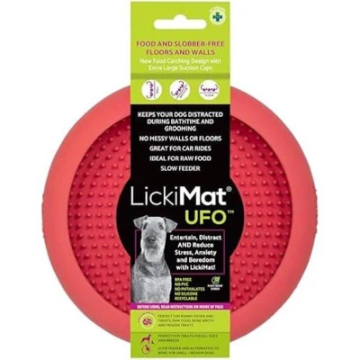 New LickiMat UFO Bathing, Shower & Grooming Distractor. Natural Rubber Large Soother Licking Nubs soft and runny treats. Unique Food Dribble Catcher Design. Slow Feeder Dog Bowl. (Pink)