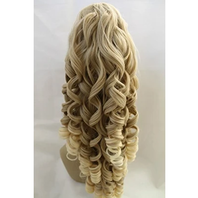 New Long Synthetic Curly Light Mix Blonde Dark Claw Clip Ponytail Hair Piece Extension 22" (Light #24613)