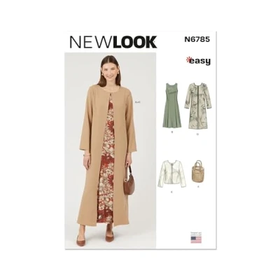 NEW LOOK Sewing Pattern UN6785A Misses' Dress and Coat Each in Two Lengths, Jacket Bag A (10 12 14 16 18 20 22)