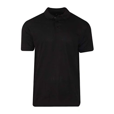 New Mens Polo Shirt Cotton Short Sleeves Pique Casual Work Plain Top T SI120 (Black, XXL)