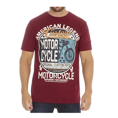 New Mens Printed T Shirts Short Sleeve Crew Neck Cotton Tees Casual Top (Burgundy, Large)