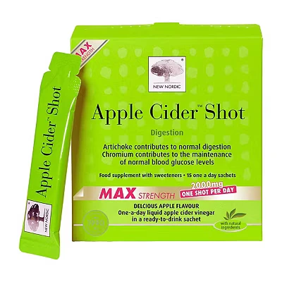 New Nordic Apple Cider Shot, Liquid Sachets with Vinegar, Artichoke, Dandelion and Chromium, 15