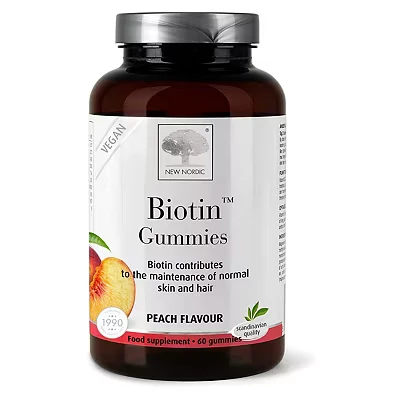 New Nordic Biotin Gummies, Supplement for Skin and Hair, Peach Flavour, 60 Gummies