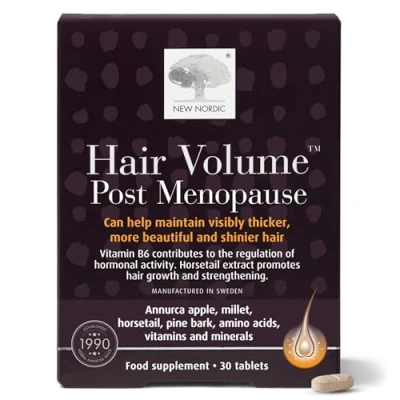 New Nordic Hair Volume Menopause Supports Healthy Growth Extra Strength 3000 mcg Biotin, Vitamins B6 and B12 Nourishes Mature for Women 30 Tablets