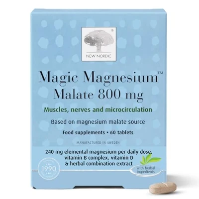 New Nordic Magic Magnesium Malate 800 mg Extra Strength High Absorption with Vitamin B Complex, and D Muscle Sleep Support for Women Men 60 Tablets