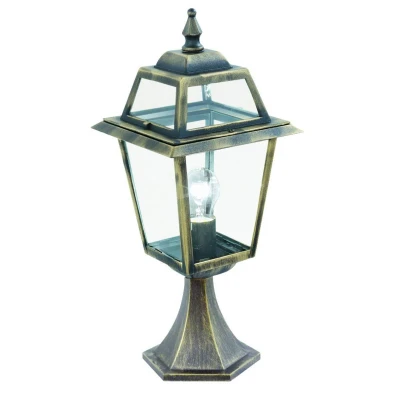 New Orleans 1 Light Outdoor Pedestal Lantern Black, Gold IP44, E27
