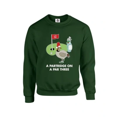 New Spirit Original Partridge On A Par Three Xmas Christmas Unisex Funny Adults Sweatshirt Jumper Forest Green