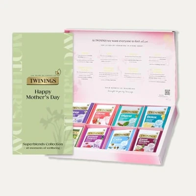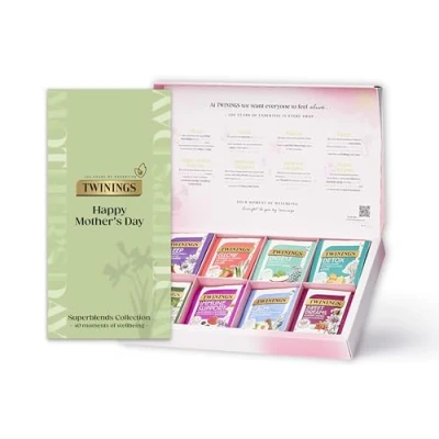 MOTHER'S DAY TEA GIFT BOX: Twinings Superblends Collection Tea Set Gift Box includes 8 blends from our best selling Superblends range with a 'Happy Mother's Day' sleeve. TEA BAGS: Discover our most popular & loved infusions from sleep tea with passionflower for relaxation, detox tea to feel anew & glow tea to help look your best GIFT SET: Enjoy our individually wrapped tea bags from the delicious Superblends range, expertly blended with botanicals, vitamins & minerals SELF CARE: Our tea bags are plant-based & biodegradable - feel your best whilst doing your bit for the planet SOURCED WITH CARE: Our vision is for healthier, happier, empowered and sustainable communities in our supply chain