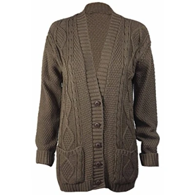 New Womens Everyday Long Sleeve Button Top Ladies Chunky Aran Cable Knit Grandad Cardigan Mocha Light Brown Size 16