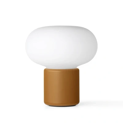Karl-Johan Portable Table Lamp IP65 Ochre Yellow The eternally beautiful Karl-Johan lamp from Danish design company New Works and Danish designer Signe Hytte is now available as a portable. Named after the coveted edible sponge, the small lamp uses natural shapes in its design - and in the revised portable version, which has just landed on lamp retailer shelves, nature is even more noticeable in the model. The Karl-Johan Portable Table Lamp IP65 Ochre Yellow is rechargeable and holds power for up to 22 hours. By turning the top part of the lamp, the light is switched on and you can dim the light in three steps by touching the lamp under the bottom. Karl-Johan has a sealing rating of IP65, and is therefore ideal for taking with you on adventures outside in nature.
