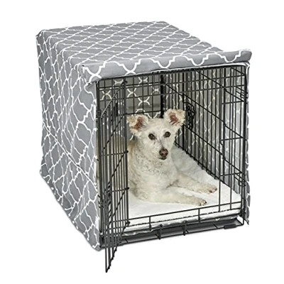 Resists Stains & Spills: Features Teflon Fabric Protector that repels liquids, stains, and oils; causes spills to bead up for easy wiping and helps keep the crate cover looking newer, longer Sized to Fit Most 76cm Crates: Measures approximately 76.2cm x 50cm x 53.3 cm; designed for iCrate models 1530, 1530DD and New World models B30, B30DD, and fits most standard 76cm metal dog crates Creates a Calming Crate Environment: Helps reduce anxious behaviors like barking and chewing by providing the privacy and den-like security dogs instinctively seek Flexible Door Access: Compatible with single, double, and triple door crates; flaps lift for adjustable visibility and ventilation—does not accommodate top-door crates Secure, Breathable Design: Made from lightweight, poly-cotton designer fabric with hook-and-loop tabs to keep cover securely in place while allowing airflow Easy to Maintain: Machine washable and dryer friendly for hassle-free cleaning; no tools required for use or installation Family Owned & Operated: Proudly family owned for over 100 years with customer support based in Indiana; we stand behind the quality of our products to help you create a safe, comfortable home for your pet