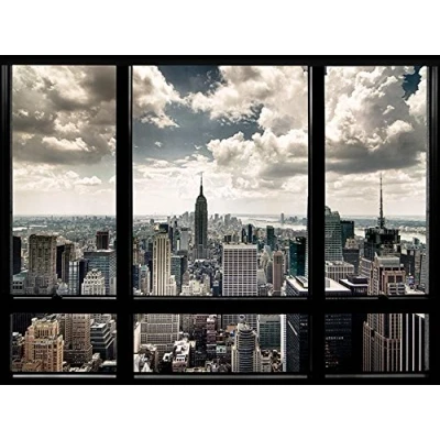 New York Window Canvas Print, Cotton, Multi Colour, 3.20 x 60.00 80.00 cm