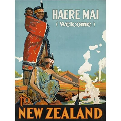 New Zealand Maori Haere Mai Welcome Vintage Travel Advert Large Print Poster Wall Art Decor Picture