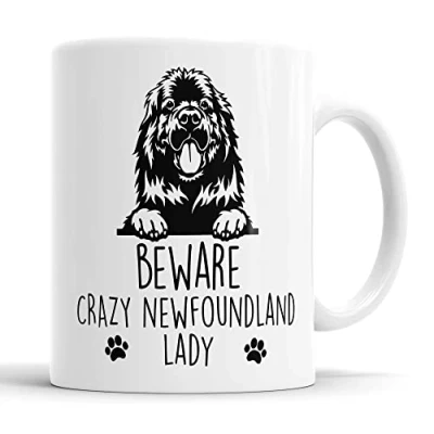 Newfoundland Mug Beware Crazy Lady Gift Dog for Birthday Christmas Friend, Mum, Auntie, Sister Ceramic Cup