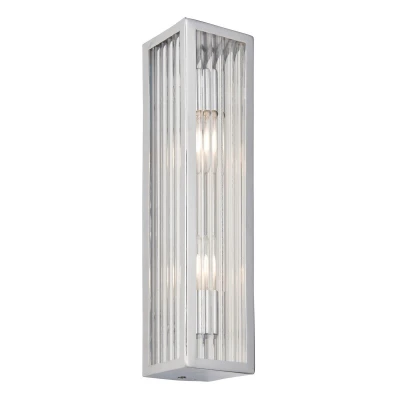 Newham Outdoor Contemporary 2 Light Wall Lamp Chrome, Clear Ribbed Glass