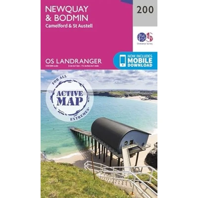 Newquay & Bodmin Map Weatherproof Camelford St Austell Ordnance Survey OS Landranger Active 200 England Walks Cycling Days Out Maps Adventure
