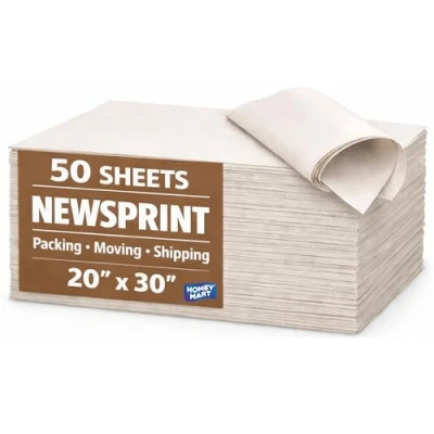 Newsprint Packing Paper 20" x 30" Sheets, Unprinted Ink Free for Moving, Shipping, Wrapping Dishes & Glassware, Kids Crafting, Sketching, Pet Cage lining, Newspaper Offcuts Home Office 50 Sheets