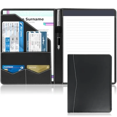 VERSATILE FUNCTIONALITY With multiple functional compartments, this document bag is designed to meet your various needs. It has dedicated slots for credit cards, a pen holder and a pocket for your smartphone. Stay organized and keep everything at hand. Convenient and Portable The lightweight and compact design of this document bag makes it easy to take it anywhere. Whether you are going to a meeting, traveling or working remotely, this bag is your reliable companion. Spacious and Safe This A4 size fabric document bag provides ample space to store important papers, notebooks and even a 13 inch tablet. STYLISH AND DURABLE The black faux leather design adds an elegant touch to your professional image. Made of high quality materials, this document bag is durable and reliable for long term use. PERFECT FOR OFFICE & TRAVEL Ideal for businessmen, students and travelers, this document bag combines functionality with style. Keep your documents organized and easily accessible for a stress-free experience no matter where you are.