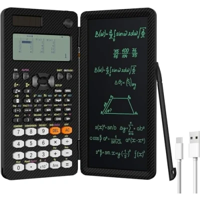 【Innovative Design Scientific Calculator】 NEWYES Calculator comes with a 6.5" tablet and a pen, which allows you to take notes while calculating. You can press the Delete button to erase notes and also lock it to keep them. 【Rechargeable Design】 Forget about extra expenses for batteries! NEWYES 991EX calculator uses a built-in USB Type-C charging (includes dedicated cable) Ideal for students busy between classes and exam sessions. 【552 Computer Functions】 Calculations including fractions, statistics, complex numbers, linear regression, basic arithmetic, computer science, standard deviation, polar-rectangular coordinate conversion, equations, inequalities, proportions and more 【Foldable and Portable】 NEWYES calculator notepad can fold and the LCD screen also serves as a lid that closes to store it neatly when you don't need it, fits well in your pocket. It is ideal for students, engineers, teachers and professional researchers. 【Good Quality】NEWYES scientific calculator is durable and has premium plastic keys that are more sensitive and precise than silicone keys.