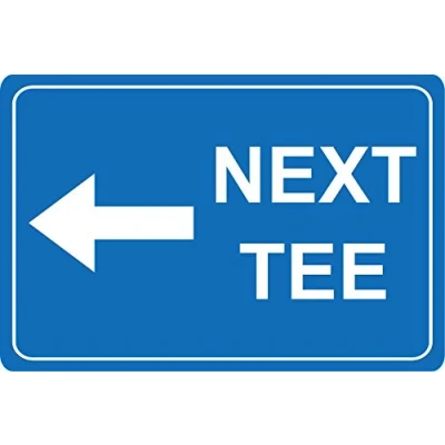 Next tee this way left arrow Golf sign 1.2mm Rigid plastic 300mm x 200mm Digitally printed for extra durability Drill and screw in position or use double sided tape to mount onto suitable surface., Manufacturer: KPCM Display ltd