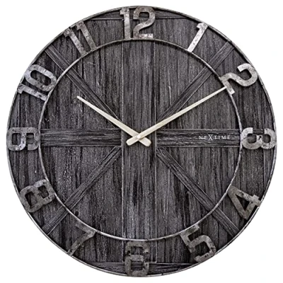 NexTime Large Wall Clock 50 cm Silent Black Wood Metal York