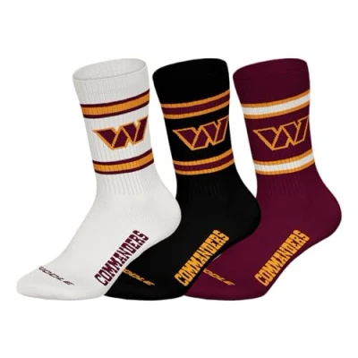 NFL Commanders 3pk Crew Socks, White Black Red, 43 46