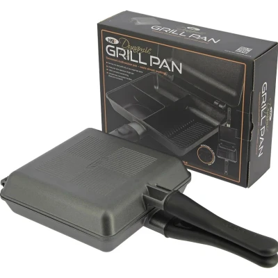 FishdealNGT Dynamic Grill – 3 Way Pan With Lid And Removable Handles - Dimensions: 23×23×8cm - Dimensions per pan: 23×23×4cm - Cast aluminum with non-stick coating - Magnetic handles - Can be disassembled into two separate pans - Upper pan has one compartment for larger dishes - Lower pan has three compartments, including a griddle and egg compartment The NGT Dynamic Grill – 3 Way Pan With Lid And Removable Handles is a versatile and compact grill pan, perfect for outdoor use while fishing or camping. Made of cast aluminum with a durable non-stick coating, this pan offers optimal heat distribution and easy cleanup. The pan consists of two parts that can be used separately: the upper pan has one large compartment, ideal for larger dishes, while the lower pan has three separate compartments, including a special griddle and a compartment for frying an egg. Thanks to the magnetic, removable handles, the pan is space-saving and easy to store. A smart solution for preparing a complete meal outdoors!