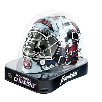 COLLECTIBLE: Can't get enough of your favorite NHL Team? Put them on display! This goalie mask is a perfect way to support your team while adding decoration to any space! DURABLE CONSTRUCTION: The molded plastic vented shell with foam liner is perfect for keeping the mask in good condition while on display FUNCTIONAL: Looking to add some decor to your space? This mini goalie mask is perfect for NHL fans looking to dress up their shelves, desk, car dashboard, & more! GREAT GIFT: Do you know a diehard NHL fan? This gift is perfect to give to someone with a favorite NHL team! They'll love having their favorite team on display SIZE: 4.5" wide, 5" long, and 4" high, includes clear display box Collectable miniature goalie mask in Official NHL team colors and logos Size: 4.5" wide X 5" length X 4" high, Clear display box Authentic pro-style mask and cage design, molded plastic vented shell with foam liner Full function adjustable back plate Chrome finish "cat-eye" molded plastic cage