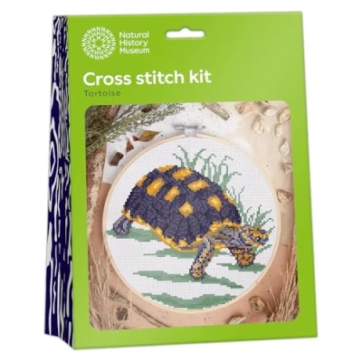 NATURAL HISTORY MUSEUM bring you this stunning Cross Stitch Kit, with an adorable tortoise design. The set comes with detailed instructions including how many embroidery threads are used and what coloured embroidery thread to use CROSS STITCH KIT INCLUDES 13.5cm hoop, aida fabric, assorted threads, needles and needle threader as well as detailed instructions. The hoops features a screw to adjust the tightness of the cloth USE to improve your cross stitch skills or learn a new craft and hobby. Ideal as a unique gift for a loved one at Christmas, Birthday, Easter, Wedding Gift or art and craft fans. Great for decorating your house, room, greenhouse or home office CRAFTS FOR ADULTS are fun and rewarding, after completing, why not frame the cross stitch pattern or hang the hoop directly on your living room or bedroom wall as décor, or sew directly onto a canvas bag, quilt or pillow as a special gift CROSS STITCH KITS embroidery, and punch kits are different types of embroidery techniques. NHM bring you stunning designs from nature to improve your hands-on skills. The cross stitch pattern on the cloth will provide help for cross stitch beginners