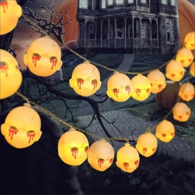 NICAI Kitchen Halloween Ghost String Lights, Battery Operated 10 LED Decorative Lights for Indoor & Outdoor, Festive Shaped Lanterns with Spooky Glow(Ghost Head)