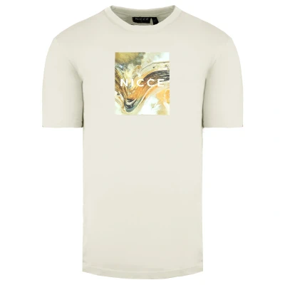 NICCE Round Neck Short Sleeve Mens Cream Aerial Box T Shirt 211 1 09 12 0343 Cotton Size X Small