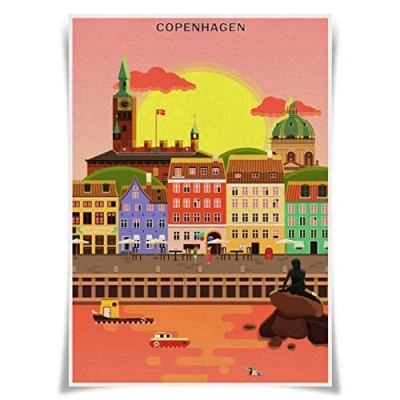 Nice Captain Travel Posters Famous Tourist Sites Prints A3 Size Wall Art Home Decor (Danmark Copenhagen)