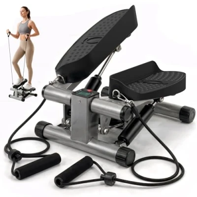 Niceday Mini Stepper Exercise Machine, Steppers with Resistance Bands, Step Machine Exerciser for Home, Up Down LCD Monitor, Space Saving, Non Slip Pedal, Legs Arms and Full Body Training