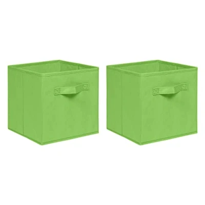 NICEME Foldable Cube Storage Unit Boxes, Non Woven Fabric Boxes Set, Clothes Drawers for Shelves, 26.5x26.5x28 cm (Light Green, Set of 2)