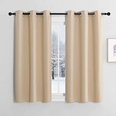 NICETOWN Beige Opaque Bistro Curtains, Set of 2, H 120 x W 107 cm, Short Window Curtains with Eyelets, Thermal Curtain, Modern Bedroom, Biscotti Beige, cm