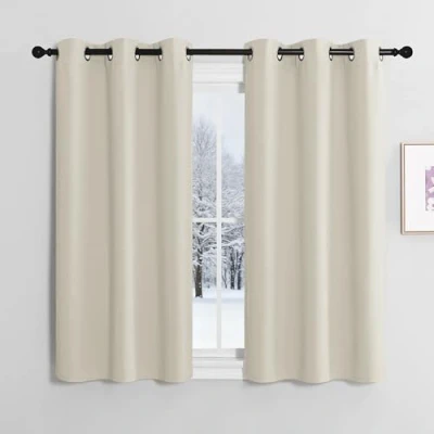 NICETOWN Blackout Curtains, Beige Set of 2, H 120 x W 107 cm, Opaque Curtain with Eyelets, Living Room, Short Window Modern Thermal Light Beige, cm