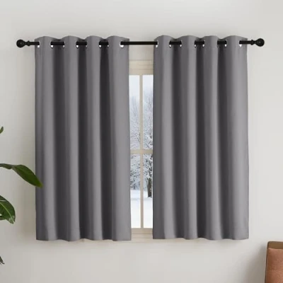 NICETOWN Curtains Grey Opaque Short Blackout with Eyelets Window Curtain Set of 2 H 145 x W 140 cm Modern Thermal