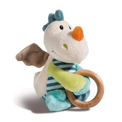 NICI Cuddly Soft Toy Grabber Dragon Dragilu 15cm with Wooden Ring and Bell, for Newborns