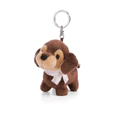 NICI Keyholder dachshund Skida 10cm brown Sustainable companion cuddly animal pendant with key ring for lanyard, & holder